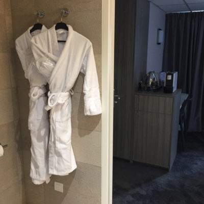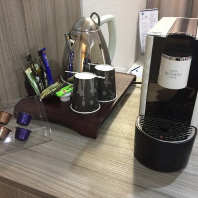 You will also discover our new line of hospitality products from the FAIR CosmEthics brand, an innovative skincare line that supports fair trade principles with the use of sugar cane and Brazil nut oil. Coiled in your bathrobe, enjoy an espresso thanks to your GONEO brand machine or a tea with your courtesy tray.