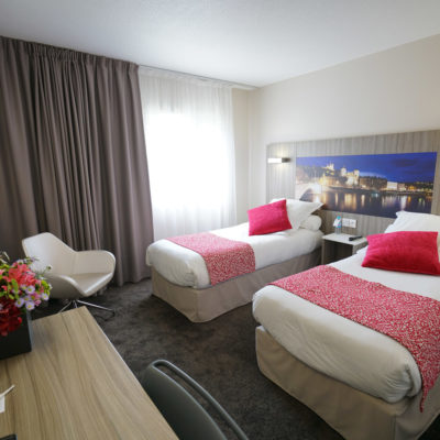 Nos chambres familiales sont en réalité deux chambres communicantes : une chambre « confort Double » (grand lit) et une chambre « confort Twin » (2 lits séparés). Elles permettent d’accueillir 2 adultes et 3 enfants de -12ans maximum grâce à l’installation d’un lit d’appoint ou d’un lit bébé.